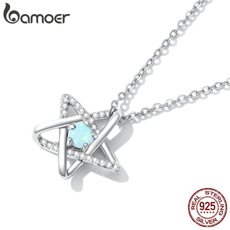 BAMOER Аутентичное ожерелье из стерлингового серебра 925 пробы с опалом и звездой, серебряное ожерелье-цепочка с замком для женщин, ювелирные изделия, свадебный подарок 925 silver