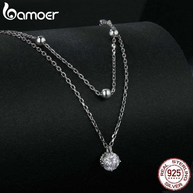 BAMOER Многослойное ожерелье с подвеской из муассанита, стерлинговое серебро 925 пробы, круглое многослойное стильное изящное колье-колье, 17,7 дюйма 925 silver