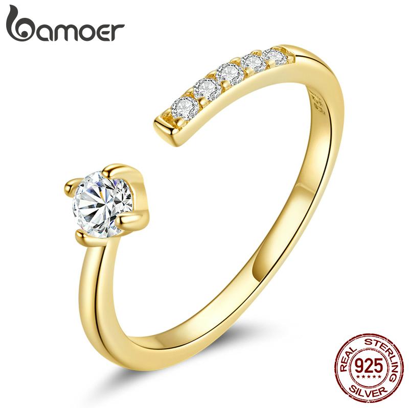 BAMOER из стерлингового серебра 925 пробы, простое модное позолоченное регулируемое кольцо с платиновым цирконом для женщин, изящные ювелирные изделия 925 silver золотой