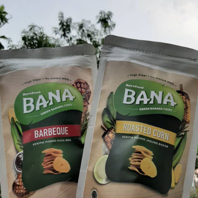 Bana Chips ini memiliki 2 varian rasa yg unik, yaitu Roasted Corn dan Barbeque