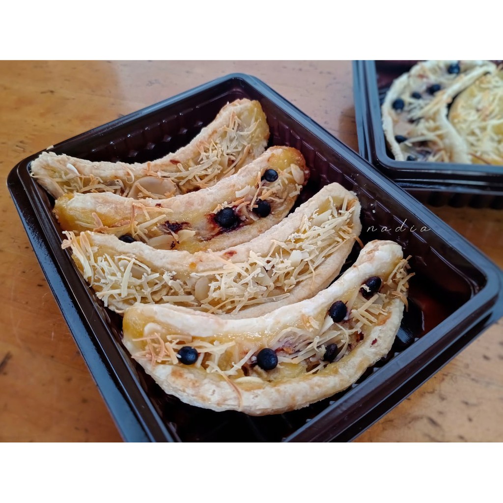 Camilan crispy terbuat dari pastry yang gurih dengan isian pisang bercita rasa manis dari buah pisang asli, susu dan potongan kacang almond. Menggunakan topping Keju + Choco Chips, Keju, ataupun Choco Chips saja.