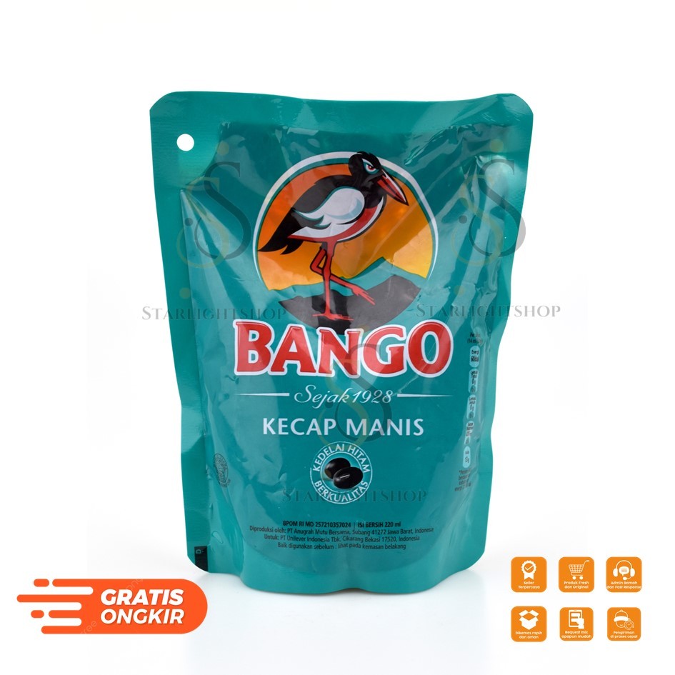 Kecap Bango Pouch 220ml merupakan kecap manis terbuat dari 4 bahan pilihan dari alam, yaitu kedelai hitam mallika, gula kelapa, garam, dan air; dibuat melalui proses pengolahan khusus yang higienis untuk menghasilkan citarasa unik. Kecap manis ini dapat digunakan pada berbagai jenis masakan seperti tumisan, goreng, bakar atau panggang sehingga berguna untuk memudahkan Anda dalam menyajikan hidangan istimewa dengan rasa yang nikmat.