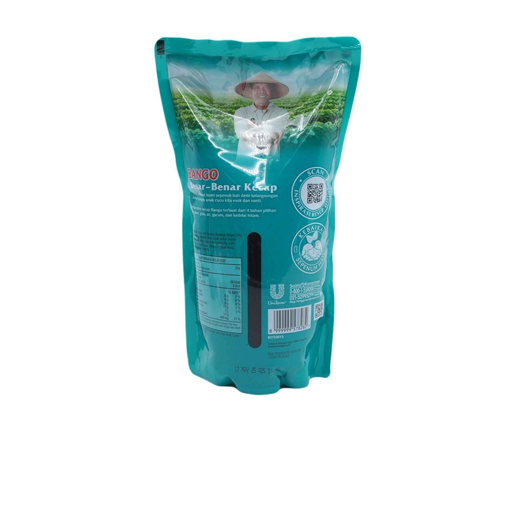 BANGO Kecap Manis Refill 1000g adalah wujud konsistensi rasa dan kualitas yang telah dipercaya sejak 1928. Diracik dari empat bahan alami pilihan — kedelai hitam Mallika, gula kelapa, garam, dan air — produk ini menghadirkan cita rasa manis gurih yang khas, pekat, dan beraroma autentik. Tanpa tambahan pengawet atau pewarna sintetis, BANGO tetap setia pada prinsip “Benar-benar kecap” dan filosofi “Rasa tak pernah bohong”.