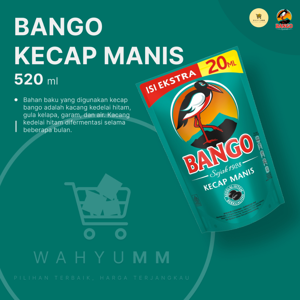 Bango kecap manis pouch dengan ukuran 520ml.