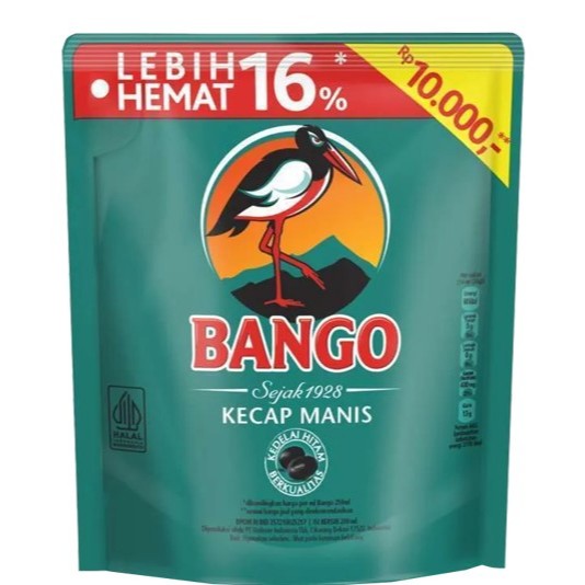 BANGO Bango Kecap Manis hidangan kuliner khas Nusantara, baik dalam masakan sehari-hari di rumah maupun di acara-acara formal. Terbuat dari 4 bahan pilihan dari alam yaitu : kedelai hitam mallika, gula kelapa, garam, dan air.