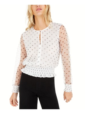 BAR III Женский белый прозрачный топ в горошек с длинными рукавами и V-образным вырезом