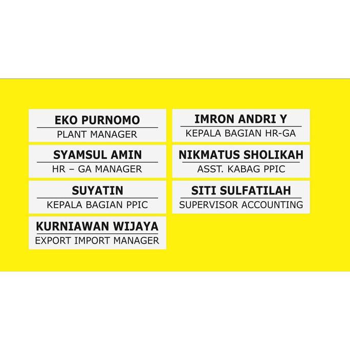 1. Sign Nama dan Jabatan. Ukuran 6x25 cm. 13 pcs.