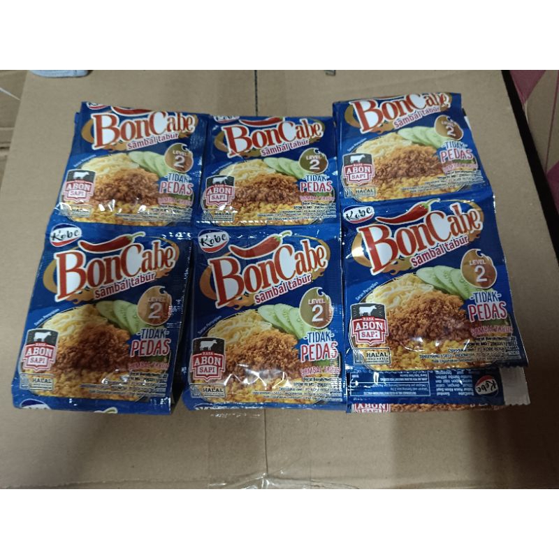 Bon Cabe sambal tabur rasa abon sapi cocok untuk menjadi pelengkap santapan Anda. level 2. harga tertera adalah harga 1renceng (isi 12 saset)