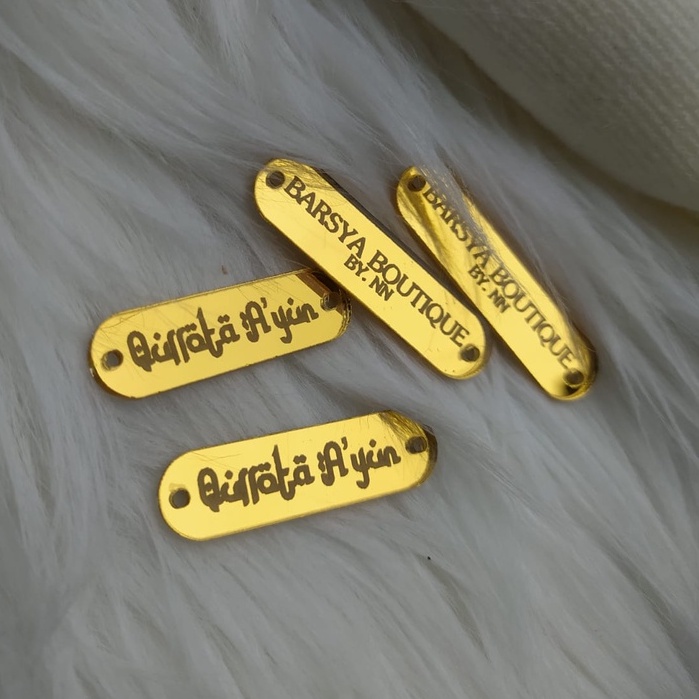 Label acrylic untuk hijab, gamis, kerudung, dan lain-lain.