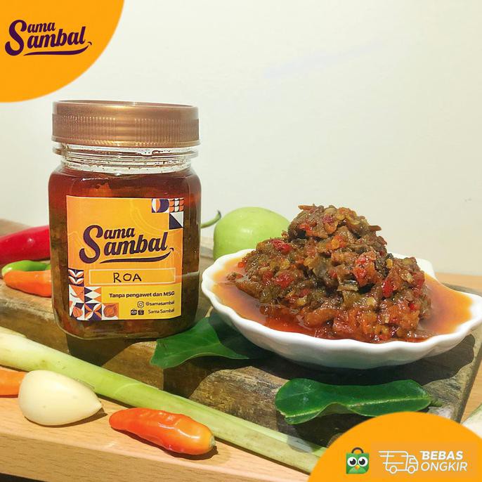 Sambal Roa lezat khas Manado siap santap, dibuat dengan Roa yang berlimpah serta bahan-bahan berkualitas lainnya tanpa menggunakan pengawet maupun MSG.