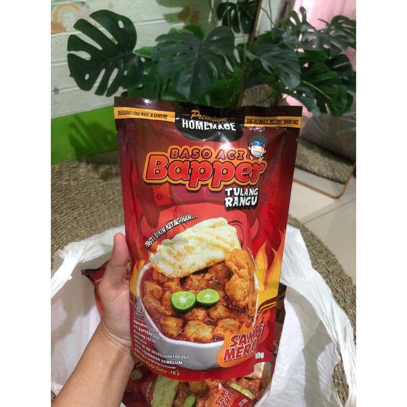 Baso Aci instant dengan tulang rangu dan bumbu lengkap tinggal direbus . 100% Daging Sapi. Tersedia pelengkap seperti siomay, bawang goreng, sukro, dan cabe bubuk didalamnya