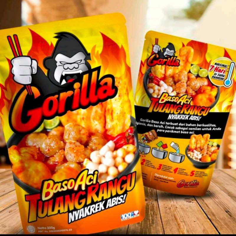 Baso aci daging sapi dengan dengan tambahan tulang rawan sapi yang kriuk kriuk. Dilengkapi dengan sambal gledeek yang khas Gorilla banget! Dijamin sampe bikin kamu merem melek deh makannya! ----- Isi kemasan: baso aci tulang rangu 10pcs, sambal gledeek, bumbu kuah, bawang goreng, jeruk nipis, sukro cikur, cuanki lidah, siomay goreng.