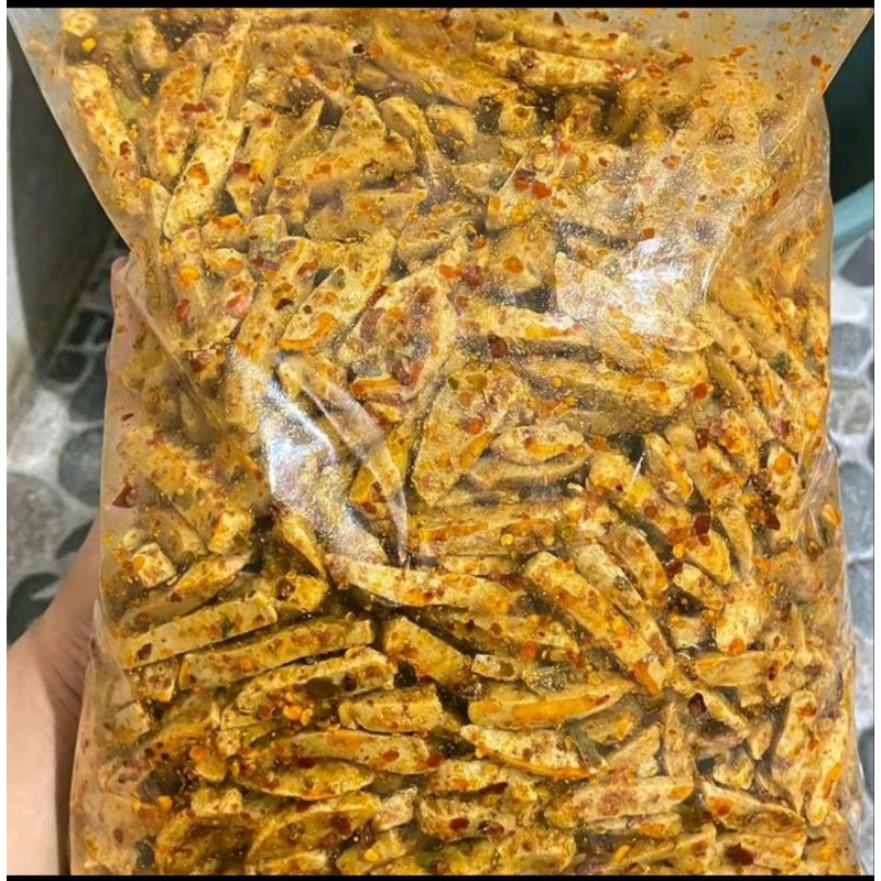 Basreng ikan kriuk dengan bumbu pedas gurih tersedia varian original.