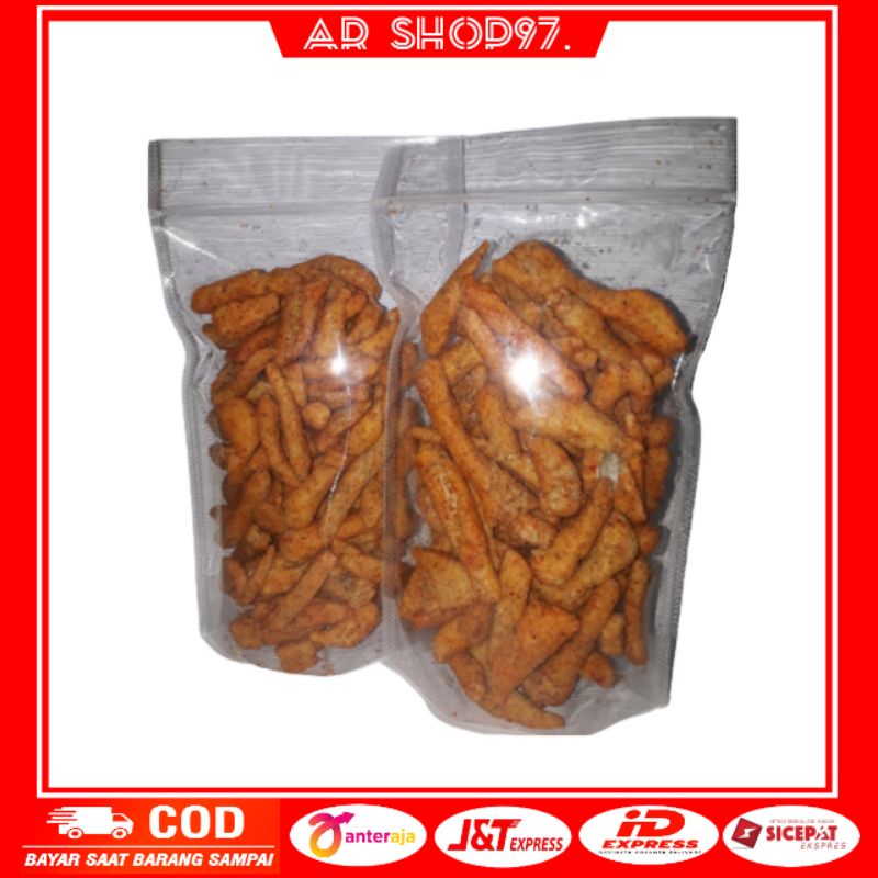 Baso goreng kriuk renyah pedas dan gurih,yang di buat dari bahan dasar ikan pilihan dan berkualitas,dan di kemas dengan kemasan standing pouch isi 100gram.