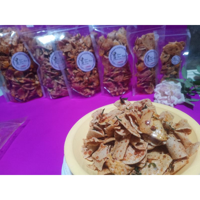 Basreng dengan taburan bawang goreng dengan rasa yg khas,racikan bumbu2 rempahnya,temukan rasanya hanya d basreng Ummu Furqon