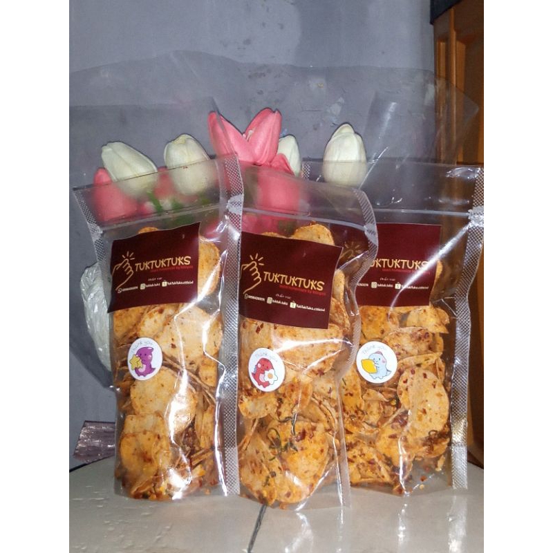 Hi Teman Tuks! ini adalah produk baru dari Tuktuktuks, yaitu basreng daun jeruk dengan rasa Balado.