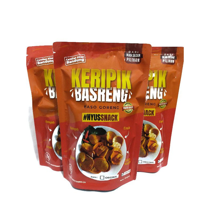 Baso goreng khas Bandung terbuat dari 100% ikan segar pilihan dengan rasa yang gurih, renyah, enak, tidak keras, dan kraux kraux