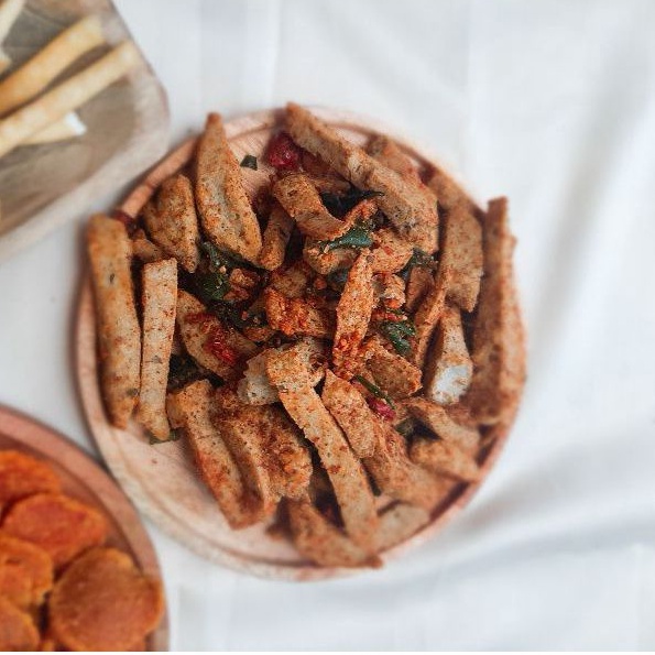 Basreng yang super renyah dengan varian pedas aroma daun jeruk cocok untuk kamu tim hobi makan pedes, bisa buat cemilan sambil nonton