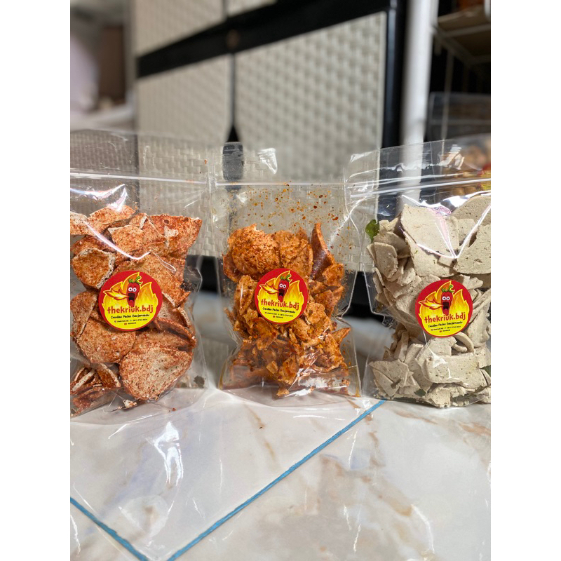 Basreng Remuk renyah bentuk bulat pipih, Ada 3 varian rasa: