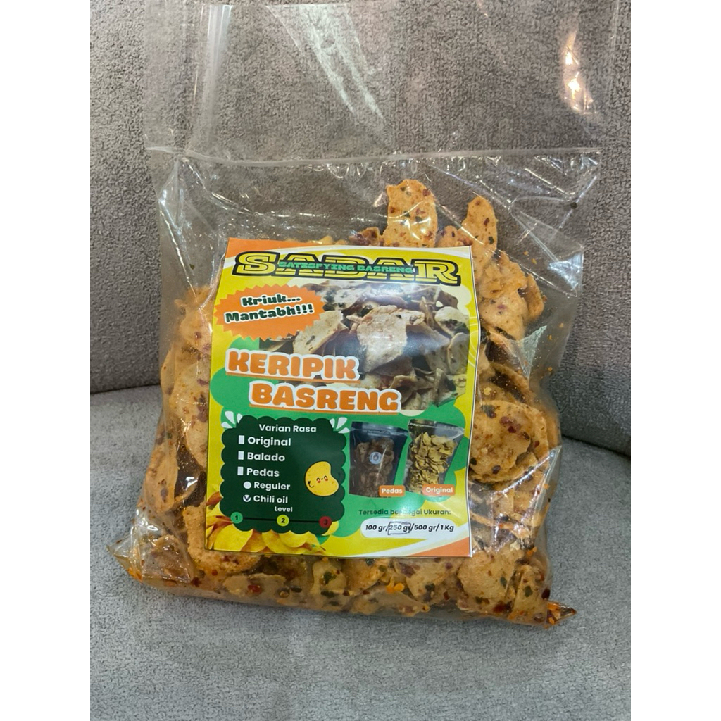 KERIPIK KERING BASRENG DENGAN BERBAGAI VARIAN RASA ORIGINAL , BALADO DAN CHILI OIL 250GR