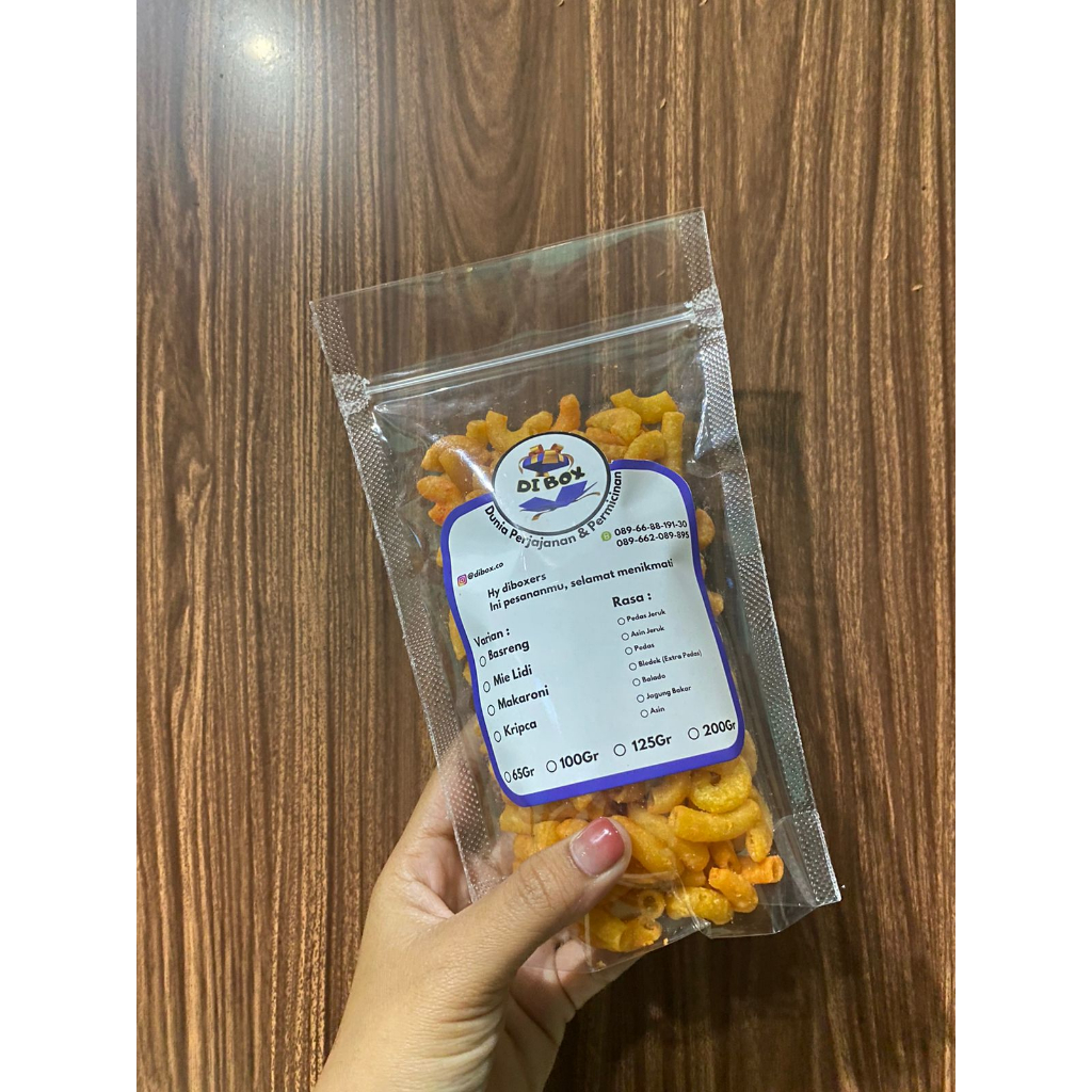 1. Makaroni dengan berbagai varian rasa (jagung, asin, balado, pedas, extra pedas)