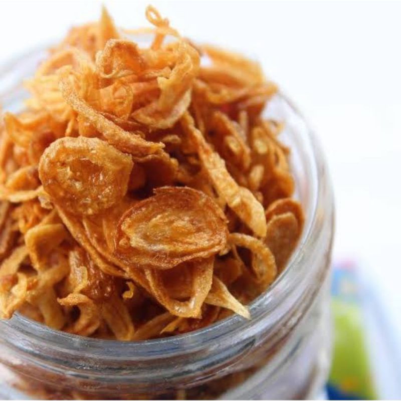 BAWANG GORENG DI BUAT DENGAN BAWANG YG SEGAR DAN DI GORENG DENGAN MINYAK BERKUALITAS TANPA PENGAWAET DAN CAMPUR BAHAN LAIN , HALAL DI GUNAKAN UNTUK TAMBAHAN DENGAN MAKANAN LAIN NYA