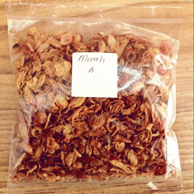 Bawang Goreng dengan kualitas terbaik,tanpa minyak, tekstur renyah,kriuk,serta memiliki aroma wangi yang kuat sangat cocok untuk campuran makanan, dan bumbu.