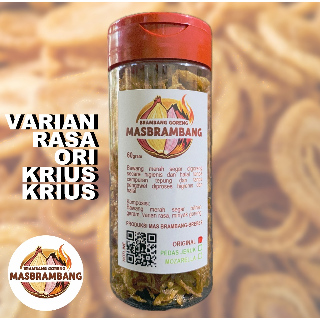 Dibuat dari bawang segar brebes diproses higienis dan tersegel. Menjamin kerenyahan dan rasa. Dikemas dalam botol tang praktis dan bisa dibawa kemana mana.
