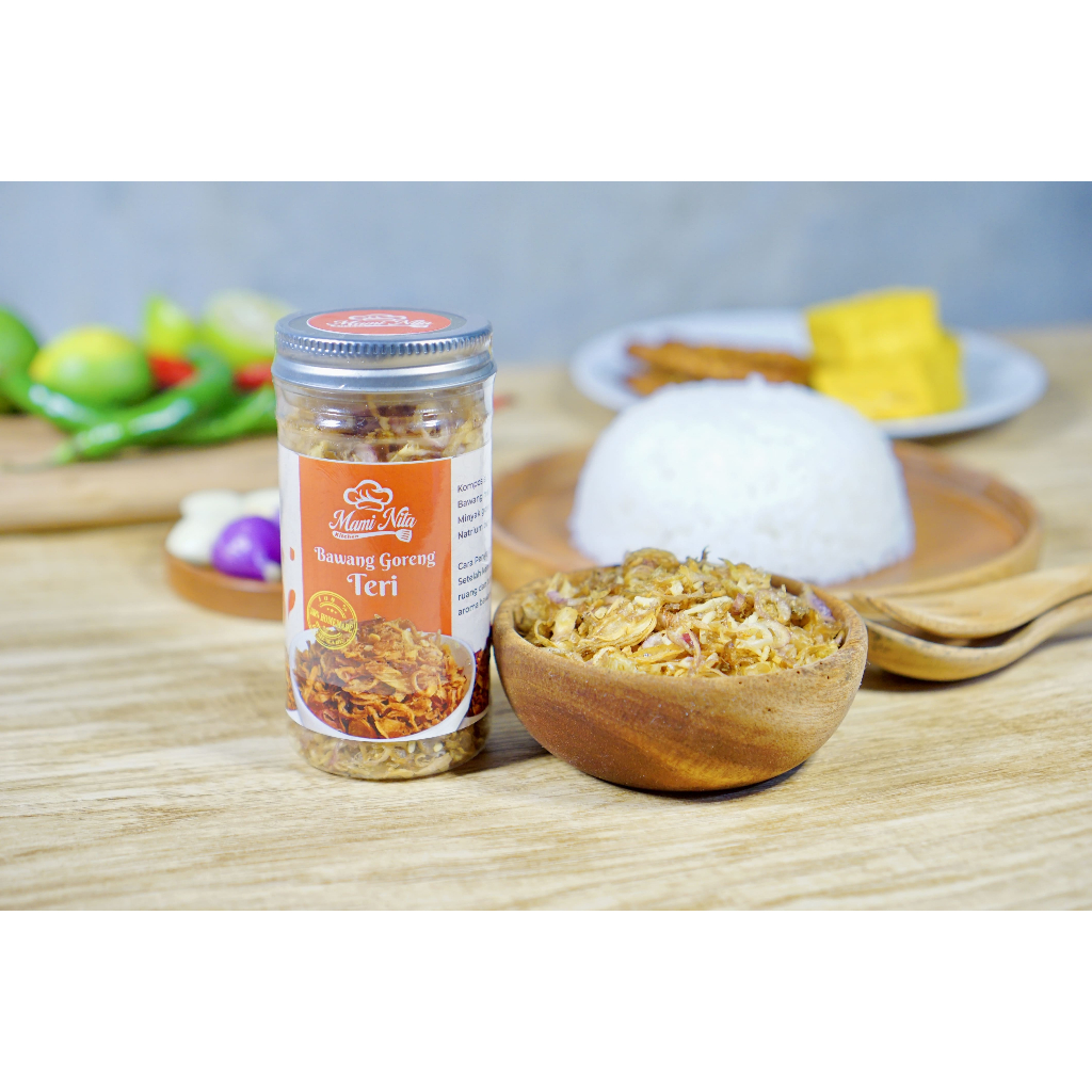 Bawang Goreng Teri produksi Mami Nita Kitchen dibuat dengan bahan-bahan alami, dihidangkan sebagai sajian pelengkap dan penyempurnaan makanan
