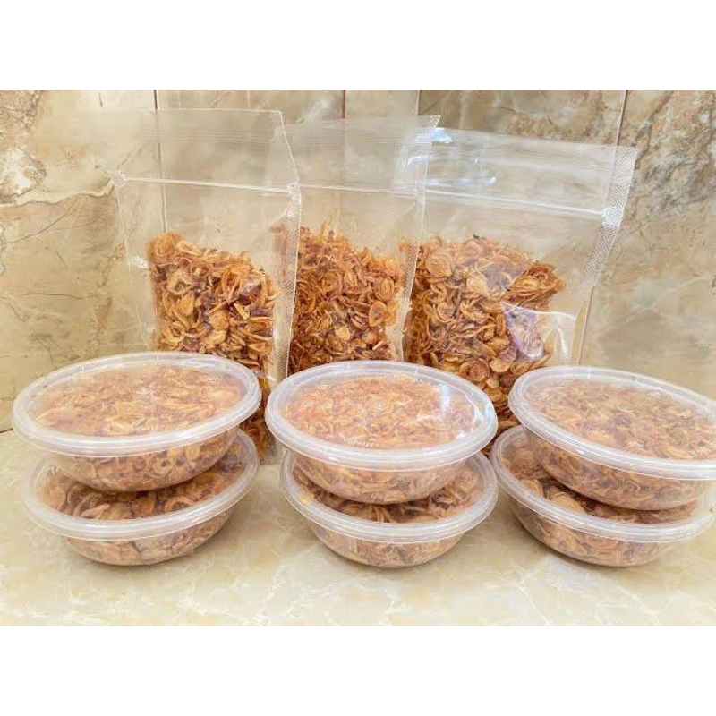 BAWANG GORENG DI BUAT DENGAN BAWANG YG SEGAR DAN DI GORENG DENGAN MINYAK BERKUALITAS TANPA PENGAWAET DAN CAMPUR BAHAN LAIN , HALAL DI GUNAKAN UNTUK TAMBAHAN DENGAN MAKANAN LAIN NYA