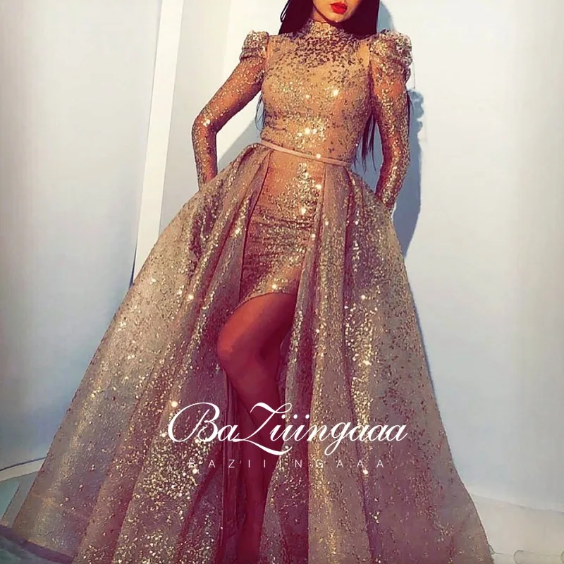 BAZIIINGAAA Роскошные вечерние платья длинное женское платье 2021 блестками Robe De Soir вечерние платья размера плюс для невесты вечерние платья для в...