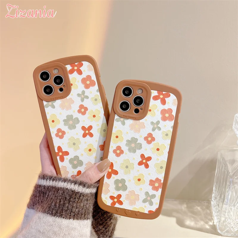 Lovely Fashion Art Flowers Brown Soft Apple Phone Case For iPhone 13 12 11 Pro XS Max X XR 7 8 Plus Cover Girl Friend Cute Sweet