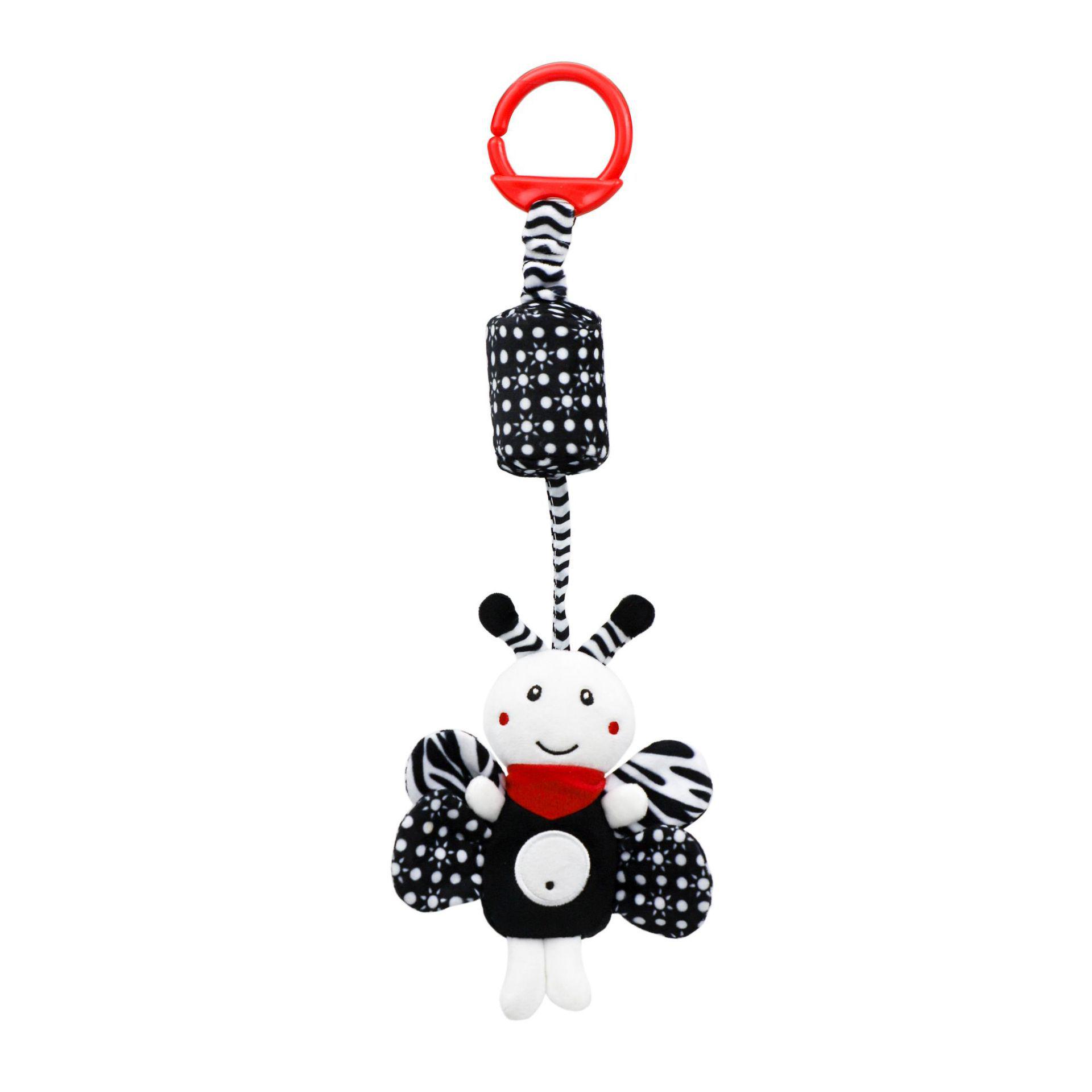 BBSKY Черно-белый мобиль для детской коляски: Плюшевые подвесные украшения в виде кролика, пчелы, птицы и собаки
