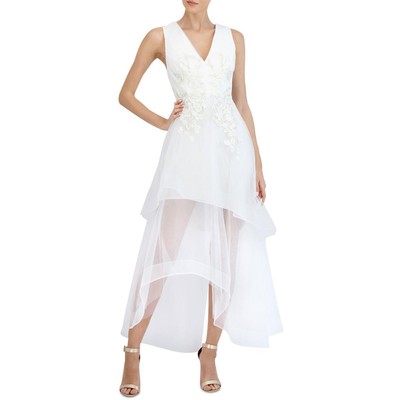 BCBGMAXAZRIA Женское вечернее платье цвета слоновой кости металлик Hi-Low BHFO 1141, Offwhite