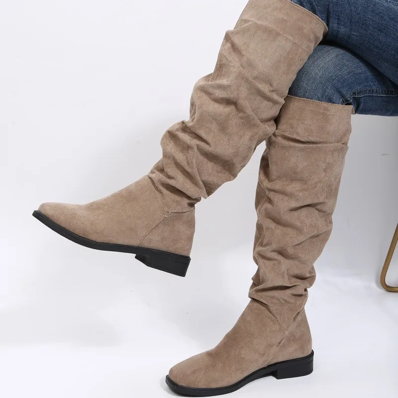 BCEBYL новая Нескользящая износостойкая модная женская обувь с круглым носком осенние и зимние удобные повседневные длинные ботинки на низком каблуке