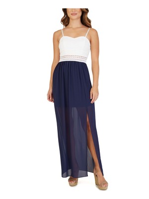 BCX DRESS Женское эластичное платье на молнии с тонкими лямками и вырезом сердечком макси, Navy