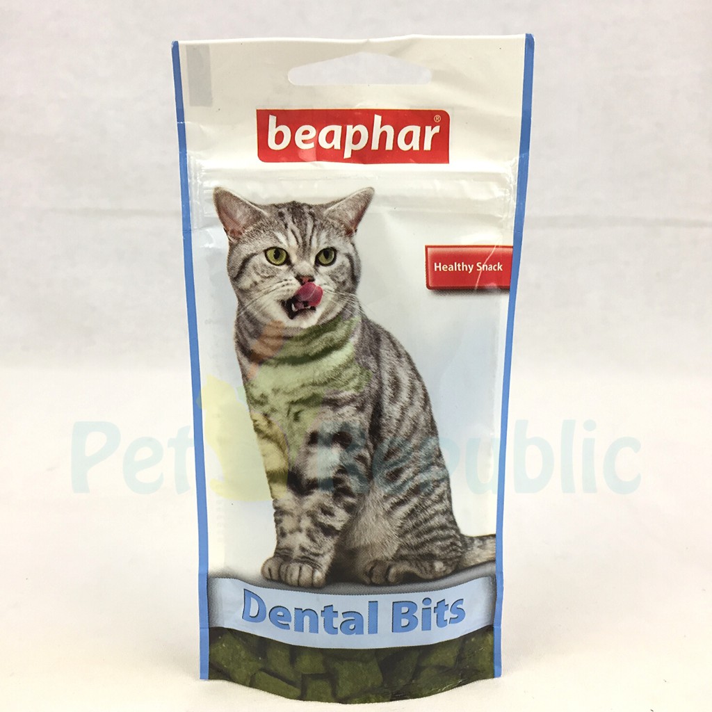 Description - Beaphar Dental Bits Cat Treat 35gDental Bits are tasty treats which are specially formulated to help keep cats’ teeth clean. 85% of cats over the age of 4 have dental problems, mainly caused by a build-up of plaque and tartar on their teeth. These easy-to-administer treats may be the solution you are looking for because they are filled with chlorophyll, a natural plant extract well know for it's abilty to absorb bad smells.