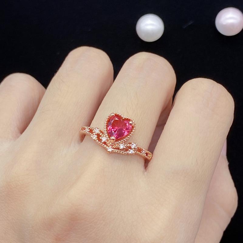 BELLA BOX Новое женское открытое кольцо из розового золота 18 карат с имитацией красного турмалина в форме сердца, простое темпераментное покрытие 17.3mm розового золота