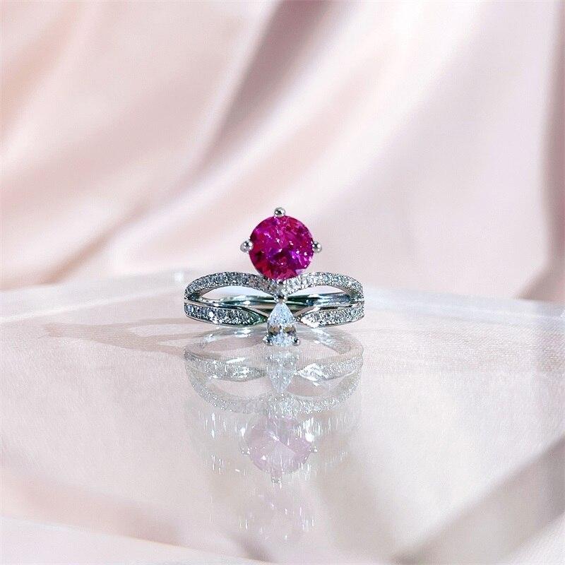 BELLA BOX Роскошное женское кольцо с цирконом круглой формы, ювелирное украшение на годовщину свадьбы, подарок Resizable красный