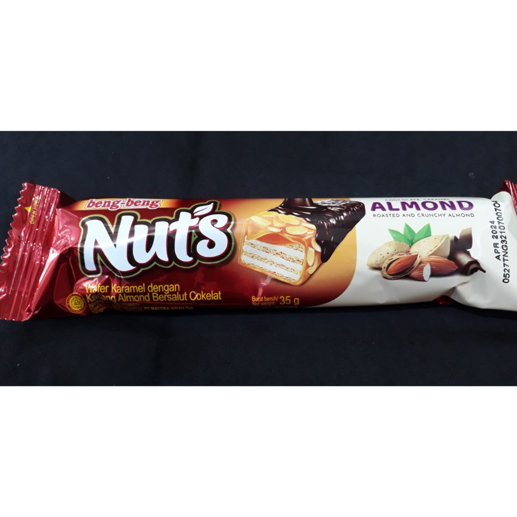 Beng Beng Nuts Almond Chocolate 35gr merupakan wafer karamel dengan kacang almond bersalut cokelat yang nikmat menjadi teman camilan anda