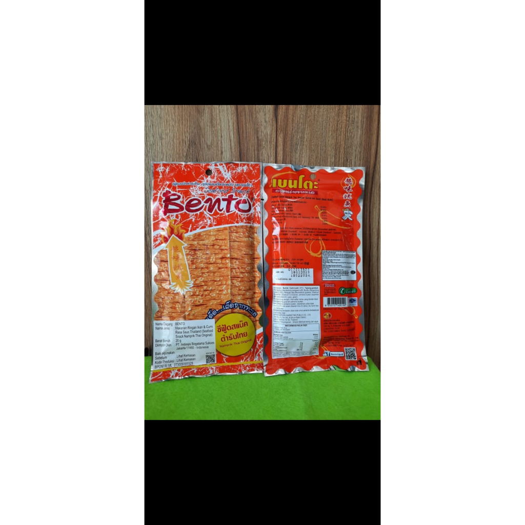 BENTO makanan ringan ikan dan cumi rasa saus thailand (seafod snack namprik thai original) berat bersih 20 gr , Bento Snack Juhi no 1 di Thailand