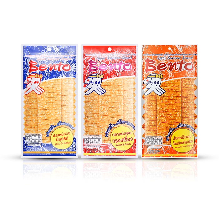 BENTO Squid Seafood Snack merupakan cemilan berbahan alami pilihan yang cocok untuk dimakan dimanapun dan kapanpun, kemasan yang tipis dan ringan memudahkan tuk di bawa. Memiliki 3 Varian rasa buat kamu yang suka pedas, manis, dan asem bisa menikmati Bento yang enak ini.