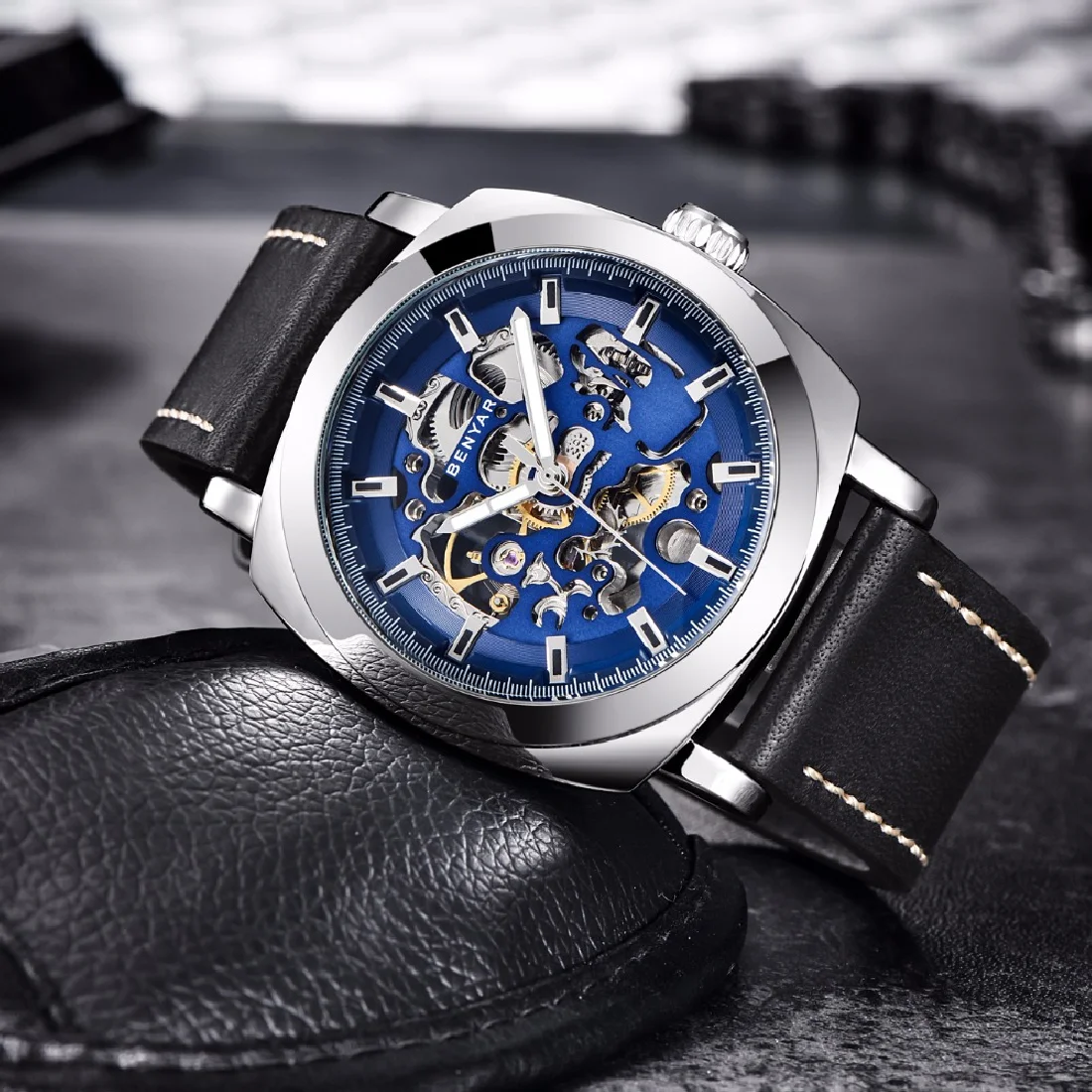 BENYAR новые модные оригинальные часы с кожаным ремешком, автоматические механические мужские наручные часы, мужские часы