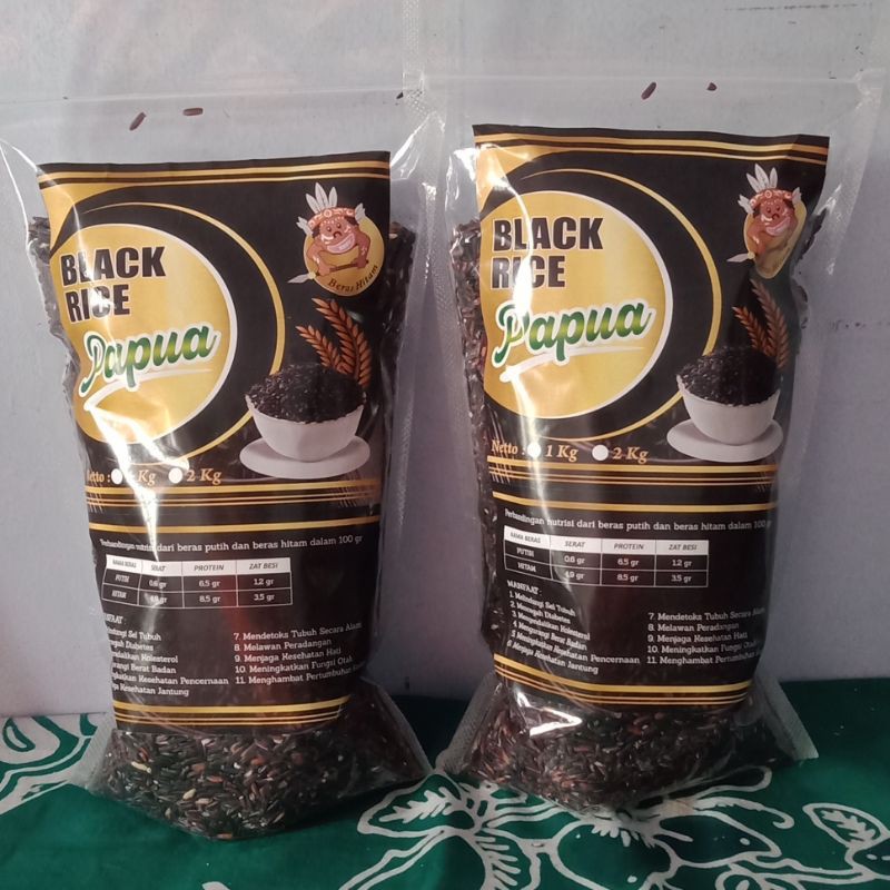 Beras hitam organik dari papua atau black rice memiliki manfaat yang lebih banyak daripada beras putih, seperti kandungan serat, protein dan zat besi lebih banyak.