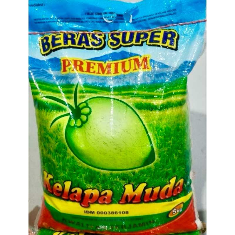 Beras premium merk kelapa muda berat 5 kg.