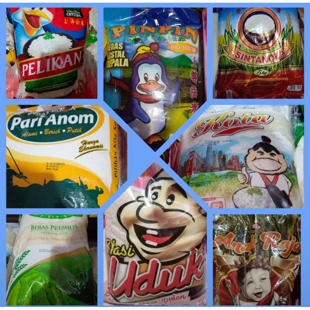 Tersedia beras kemasan 5kg merk Sania, Pari Anom, dan Pinpin