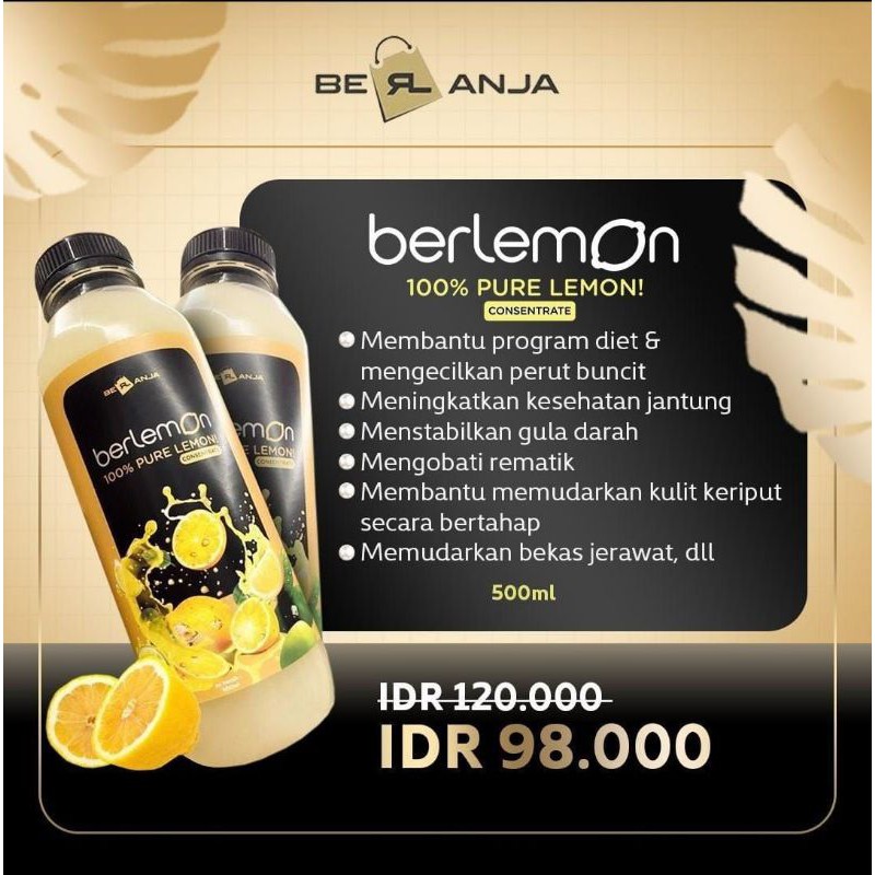 BERLEMON ini juga diproduksi dengan hanya memilih buah Lemon yang segar dan berkualitas, sehingga khasiat dan manfaat sari Lemon Murni yang dihasilkan pun Fresh.