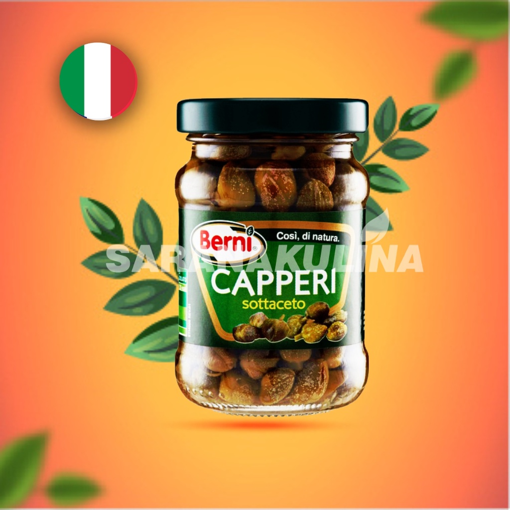 Berni Capperi Whole Capers Buah Acar Kapers Utuh Import. Capers adalah kuncup bunga yang belum matang dari semak caper yang tumbuh di daerah Mediterania. Caper umum digunakan pada sejumlah resep Italia, seperti ayam piccata, sapi piccata, dan pasta puttanesca.
