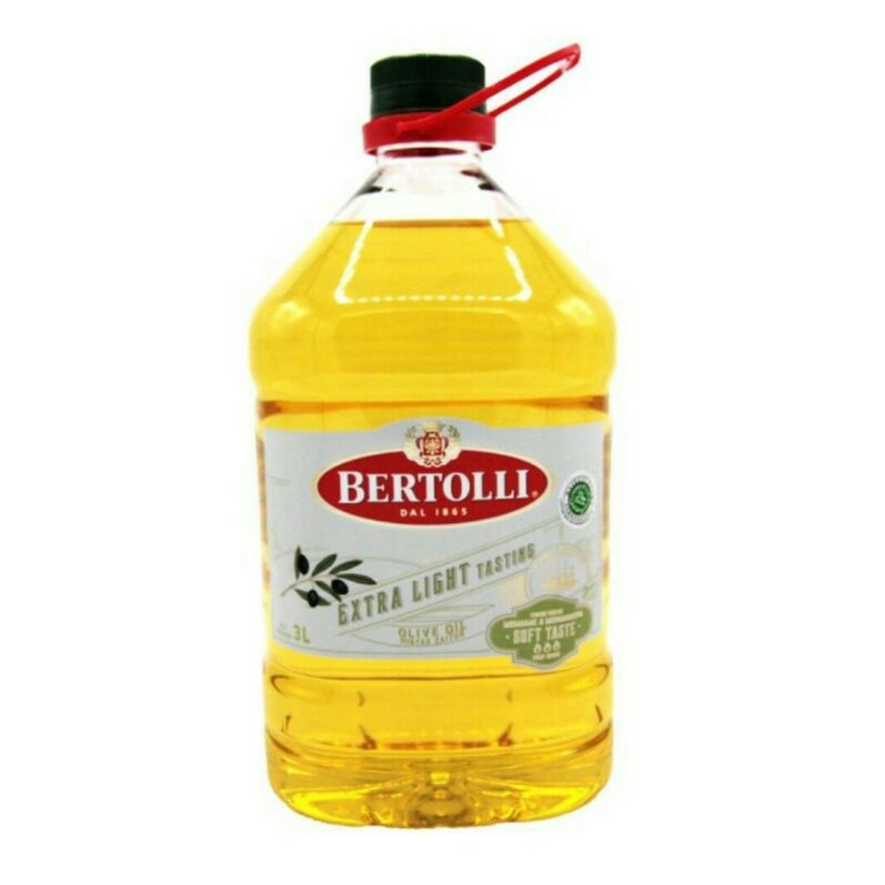 • Minyak Zaitun merek Bertolli Extra Light Olive Oil isi bersih 3 liter.