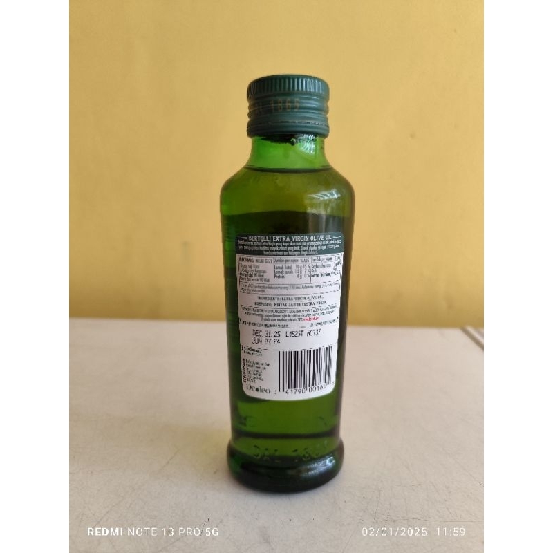 Bertolli Extra Virgin Olive Oil adalah minyak zaitun berkualitas tinggi yang banyak digunakan dalam berbagai masakan. Minyak ini dihasilkan dari proses pengepresan dingin buah zaitun sehingga mempertahankan rasa buah yang alami dan kaya akan nutrisi.